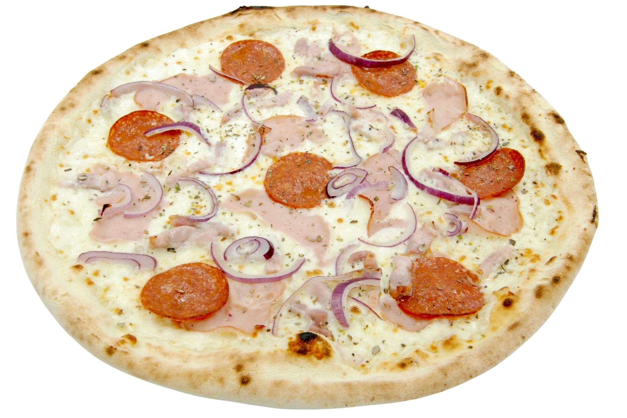 sos śmietanowy, mozzarella, boczek, jajko, czosnek, ser emilgrana, natka pietruszki / ok. 470 g Ø32cm