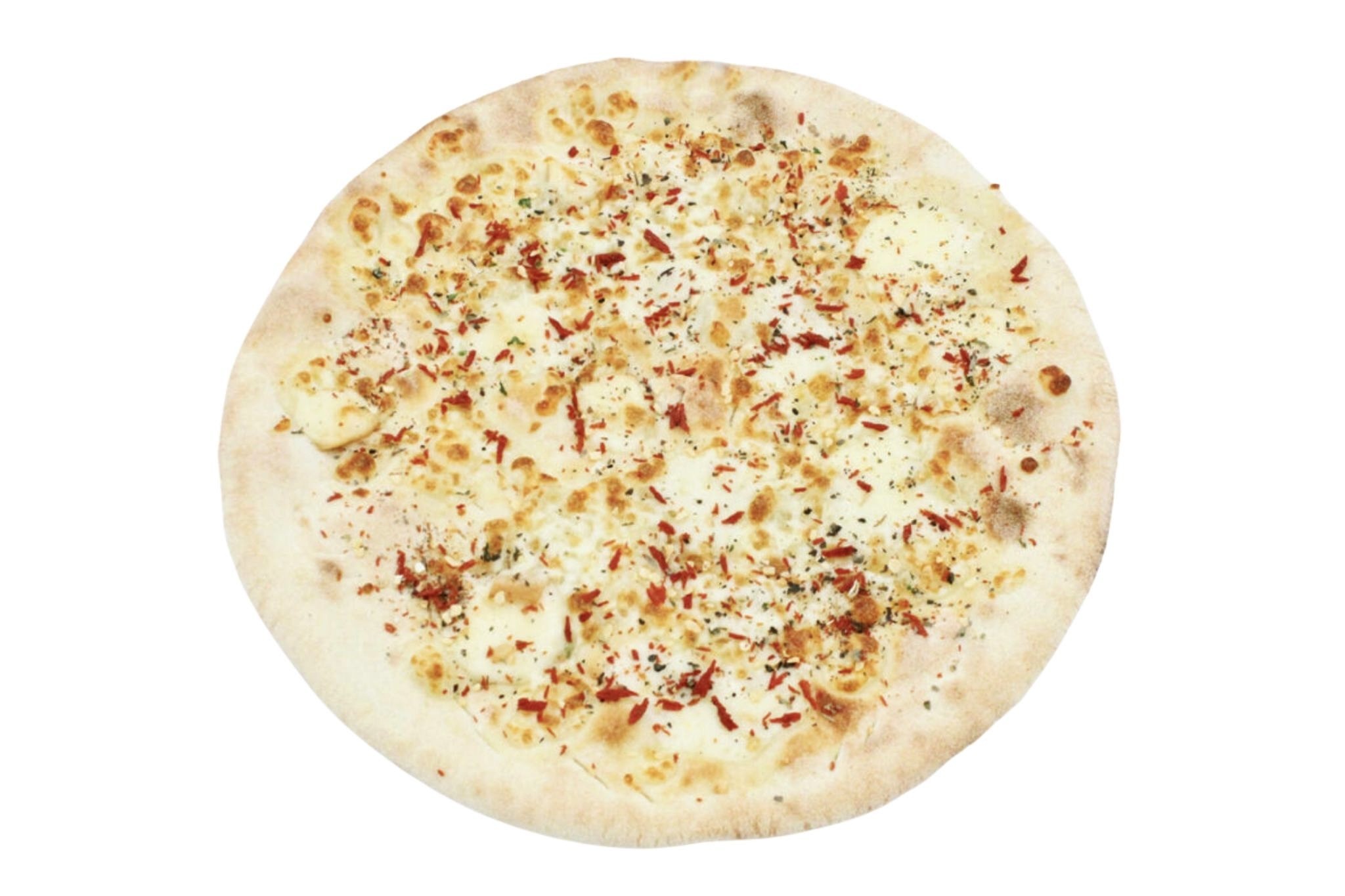spód od pizzy zapieczony z oliwą bazyliową, posypany suszonymi pomidorami z czosnkiem / ok. 160 g