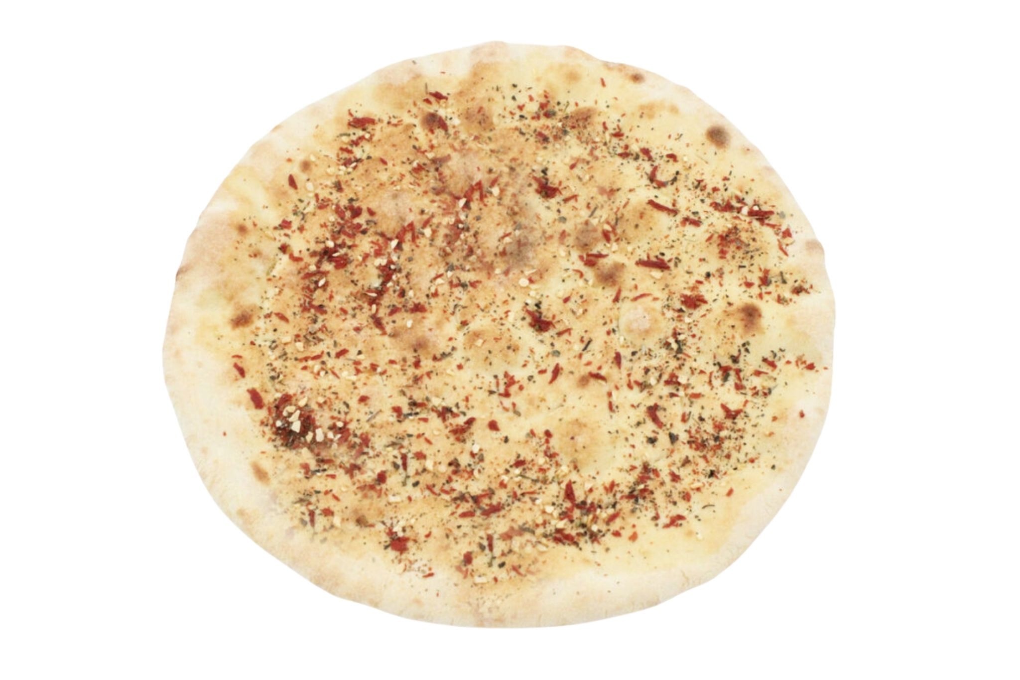 spód od pizzy zapieczony z oliwą bazyliową, posypany suszonymi pomidorami z czosnkiem / ok. 160 g
